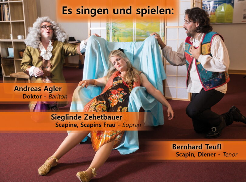 “Scherz, List und Rache” – Heitere Oper in einem Akt mit Text von Joh. Wolfgang von Goethe und der Musik des 18jährigen Max Bruch – ein vergnüglicher kammermusikalischer Geniestreich. Es singen und spielen Sieglinde Zehetbauer, Bernhard Teufl, Andreas Agler, am Klavier Gereon Kleiner (Mozarteum Salzburg)