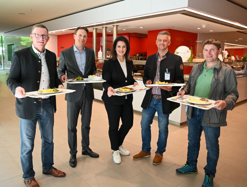 Mehr Bio und regionales Essen in bayerischen Kantinen – das ist das erklärte Ziel der Bayerischen Staatsregierung. Bis 2025 sollen in allen staatlichen Kantinen im Freistaat mindestens 50 Prozent der Zutaten aus regionaler und ökologischer Erzeugung stammen, um als Beispiel für nichtstaatliche Betriebskantinen voranzugehen. Mit der neuen Aktion „Heimatteller“ will Ernährungsministerin Michaela Kaniber nicht nur Appetit auf regionale Lebensmittel machen, sondern die heimischen Produkte auch bei der Speisenauswahl in der Kantine für die Gäste sichtbar machen. Wie die Ministerin zum Start der Aktion in der Kantine am Allianz Campus Unterföhring sagte, wird ein Mittagessen zum „Heimatteller“, wenn mindestens die Hälfte der Zutaten aus bayerischer Landwirtschaft kommt. „Unser Ziel ist es, dass sich noch viel mehr Kantinen als bisher auf den Weg machen, wertvolle Lebensmittel aus ihrer Region anzubieten und auch darauf hinweisen. Die Essensgäste sollen das leichter erkennen und sich gezielt dafür entscheiden können. Das Zeichen zeigt sofort, wie mehr Heimat auf den Teller kommt“, so Michaela Kaniber.