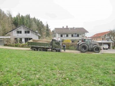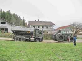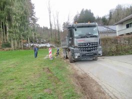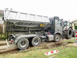Innerhalb weniger Tage kam an gleicher Stelle in Prien-Prutdorf ein schwerer LKW ins Rutschen und landete im Graben. Nach einem Papiermüll-Entsorger war es diesmal ein mit Gartenerde beladener LKW. Da dieser noch ziemlich neu war, wollte der Fahrer nicht zu nahe an die Hecken kommen, doch dann gab der seitliche Untergrund nach. Ein 360 PS starker Traktor des nahen Lohnunternehmens Pertl aus Schmieding konnte den LKW wieder befreien.