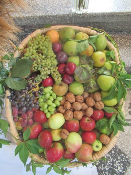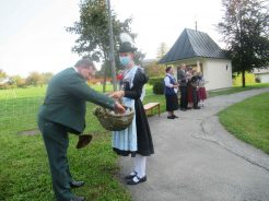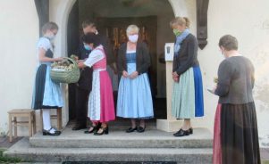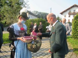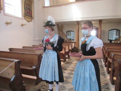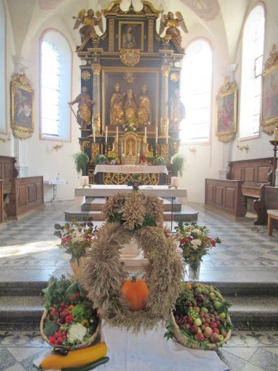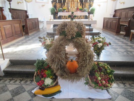 „Erntedank ist ein Freudenfest, das die Menschen und die ganze Natur mit einbezieht und das uns erinnern soll, dass wir alles, was wir ernten, essen und trinken Gott zu verdanken haben“ – mit diesen Worten begann Pater Joshy vom Pfarrverband Westliches Chiemseeufer den traditionellen Erntedank-Gottesdienst in der Filial- und Wallfahrtskirche von St. Salvator in der Gemeinde Rimsting. Aufgrund der Corona-Beschränkungen mit den reduzierten Plätzen innerhalb der Kirche wurde bei schönem Spätsommerwetter der Gottesdienst auch ins Freie übertragen.