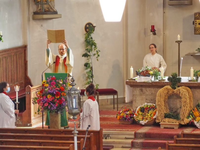 In der Bernauer Pfarrei St. Laurentius stand in zwei Gottesdiensten die Dankbarkeit für eine gute Ernte und den persönlichen Dank im Mittelpunkt. So dankte Pfarrer Klaus Hofstetter der Mesnerfamilie Weingartner, die die Altäre mit den Erntegaben rund um die Erntekrone reichhaltig, farbenfroh und mit viel Liebe geschmückt hatte. Im Familiengottesdienst richtete Cornelia Gaiser den Dank an alle, die dafür sorgen, dass Rohstoffe und Lebensmittel ausreichend vorhanden sind. „Vieles sei einfach da oder im Überfluss vorhanden und Erntedank ein Erinnerungshaken, auch für das Selbstverständliche zu danken“ – so die Gemeindeleiterin. Sie verband den Dank auch an all das ehrenamtliche Engagement im Ort und in der Pfarrgemeinde. Die Kinder hatten die Lesung mit einer Geschichte über das Wachsen eines Apfels und auch die Fürbitten gestaltet. Klaus Breuer an der Schmid-Orgel und die Hafenstoaner Alphornbläser überbrachten den musikalischen Dank. Auch die Aktion Minibrot und die Abgabe von Erntesträußerl hatte ihren Platz und der Pfarrgemeinderat freute sich über den Erlös von rund 450 EUR, der an soziale Projekte der Katholischen Landjugend in Afrika und Lateinamerika geht. In einem weiteren Gottesdienst erbat Pfarrer i.R. Andreas Münck den Segen für die Erntegaben und das eigene Leben. Zu den feinen Klängen der Seewind-Harfendirndl bezeichnete er das vermeintliche barocke Erntedankfest nach wie vor als zeitgemäß und schärfte das Bewusstsein für den persönlichen Dank über das, was man selbst im vergangenen Jahr erkämpft, errungen und erhalten hat.