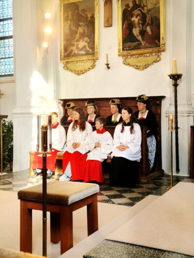 Auch in diesem Jahr gab es wieder Erntesträußerl, die ebenso wie die Erntekrone von Mitgliedern der Kreuztracht von St. Salvator erstellt wurden. Die Röckefrauen des Atzinger Trachtenvereins boten die Erntesträußerl nach dem Gottesdienst gegen eine kleine Spende an, der Erlös der Erntedank-Aktion kommt der Kirche von St. Salvator zugute. Für die volksmusikalische Gestaltung der Feier sorgten Brigitte Wallner und Veronika Fischer.