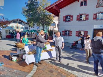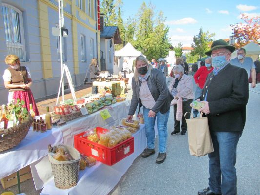 Die PrienPartner, ein Zusammenschluss von Gewerbetreibenden in der Marktgemeinde Prien, organisierten unter Beachtung der aktuellen Corona-Auflagen und mit einem eigens ausgearbeiteten Hygienekonzept einen Erntedank-Markt inmmitten von Prien. Nachdem heuer Sommermarkt und Marktfest ausfielen, waren die Priener und ihre Gäste umso dankbarer, dass auf den Plätzen der Fußgängerzone und vor dem Heimatmuseum wieder Marktleben herrschte. Für schöne Unterhaltung sorgten Schülerinnen und Schüler der Musikschule Prien. Zu den vielen Gästen, die sich mit regionalen Lebensmitteln eindeckten und es sich gut gehen ließen, gehörten auch die Priener Bürgermeister Andreas Friedrich und Michael Anner.