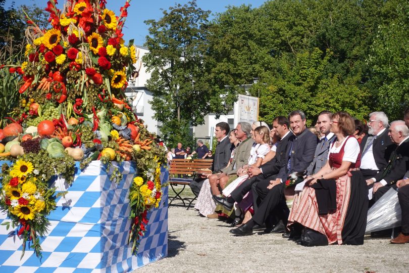 Brauchtum in seiner schönsten Form – Mit feierlichem Festgottesdienst und farbenprächtigem Festzug wurde beim heutigen Erntedankfest in Rosenheim gelebtes Brauchtum in seiner schönsten Form gezeigt. Tausende Gläubige nahmen daran teil. Unter den Ehrengästen war auch der Bayerische Ministerpräsident Markus Söder. Zelebriert wurde die ökumenische Kirchenfeier von den katholischen Amtsbrüdern Dekan und Domkapitular Daniel Reichel, Pfarrer Andreas Maria Zach und Pfarrer Sebastian Heindl zusammen mit der evangelischen Dekanin Dagmar Häfner-Becker.