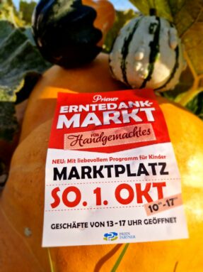 Ein buntes Angebot von Kunsthandwerk und heimischer Kulinarik wird beim Priener Erntedankmarkt am Sonntag angeboten. Es gibt Fisch, Imkereiprodukte, Schnäpse, Liköre, Nudeln, Kräuter, Gebäck und Brot, Bier, handgeflochtene Körbe, Gedrexeltes und vieles mehr. Musikalisch umrahmt wird der Markt von Schülern der Musikschule Prien.