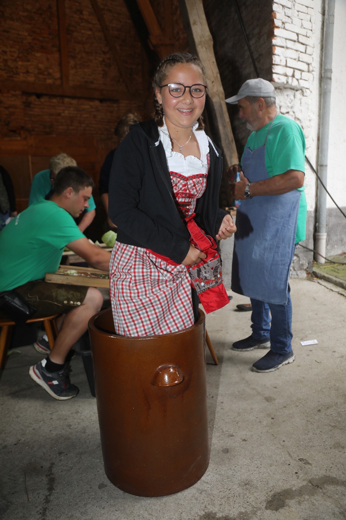 Dazu gehörte auch das Krauteintreten in den Steintrog, die von der 14-jährigen Katharina Vielhuber gezeigt wurde