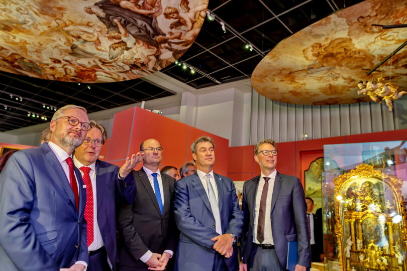 Am Dienstag, 9. Mai um 15 Uhr wurde durch den Ministerpräsidenten der Tschechischen Republik Prof. Petr Fiala und den Bayerischen Ministerpräsidenten Dr. Markus Söder, MdL die Bayerisch-Tschechische Landesausstellung „Barock! Bayern und Böhmen“ feierlich im Regensburger Dom eröffnet. Markus Blume, Bayerischer Staatsminister für Wissenschaft und Kunst begrüßte, Martin Baxa, Minister für Kultur der Tschechischen Republik hielt ein Grußwort, PhDr. Michal Lukeš, Generaldirektor des Nationalmuseums Prag und Dr. Richard Loibl, Direktor des Hauses der Bayerischen Geschichte, führten kurz in die Ausstellung ein. Beim anschließenden Rundgang durch die Ausstellung im Donausaal des Hauses der Bayerischen Geschichte stellte Direktor Dr. Richard Loibl die Highlights der Ausstellung vor.