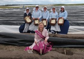 Mit Gummistiefeln ging es dann noch zum Spargelstechen aufs Feld. Dabei zeigte die Spargelkönigin ihr Können, dass sie auf ihrem elterlichen Hof von Kind auf erworben hat. Nun wünscht sich die Stadt Beelitz einen erfolgreichen Saisonstart, der nicht nur die Landwirtschaft und die Gastronomie beflügelt, sondern auch den Tourismus in der Region. So betreibt Jürgen Jacobs während der Landesgartenschau bis zum 31. Oktober neben seinem Hofrestaurant und -laden auch eine Gastronomie auf dem Hof der Posthalterei in der Beelitzer Altstadt. Auch sein Bruder Josef Jakobs bewirtschaftet einen Spargelhof in Beelitz. Er befindet sich direkt an der A9 in Beelitz-Schäpe. Als „Josef Jacobs Spargelhof“ mit Bauernscheune, Kinderwelt und Hofladen bietet er den Kunden neben Ab-Hof-Verkauf auch Gastronomie im romantischen Innenhof. Einen Spargel- und Erlebnishof der besonderen Art kann man in Beelitz-Klaistow erleben. Mit Hofladen, Hofrestaurant, Hofbäckerei, Riesen-Spielplatz, Streichelgehege, Kletterwald, etc. bietet Ernst-August Winkelmann Erleben- und Entdecken für die ganze Familie. Auch auf der Landesgartenschau ist Herr Winkelmann als Gastronom mit kulinarischen Spezialitäten vertreten.