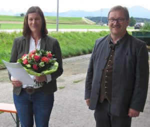 Bürgermeister Gerhard Wirnshofer bedankte sich herzlich bei der provinzialrömischen Archäologin und gemeindlichen Projektbeauftragten Andrea Krammer. Foto: TI Grabenstätt