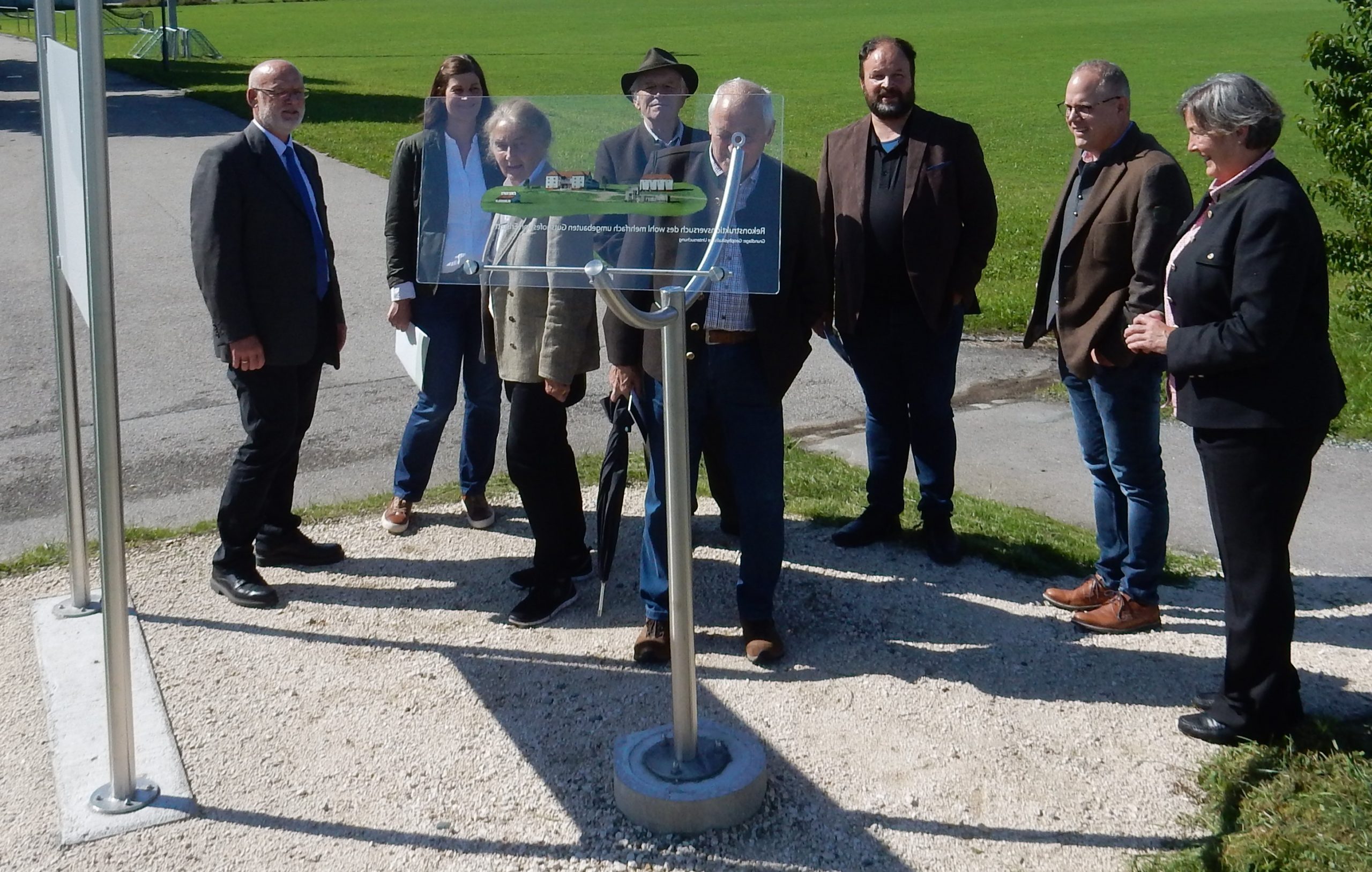 Im Rahmen des LEADER-Projekts „Römerregion Chiemsee“ ist unweit der Erlstätter Turnhalle das „Fenster in die Vergangenheit“ eingeweiht worden. Zahlreiche Ehrengäste waren vor Ort und tauschten sich über das ambitionierte Römerregion-Projekt aus, das zu einer wahren Erfolgsgeschichte geworden ist. Foto: LAG Chiemgauer-Seenplatte