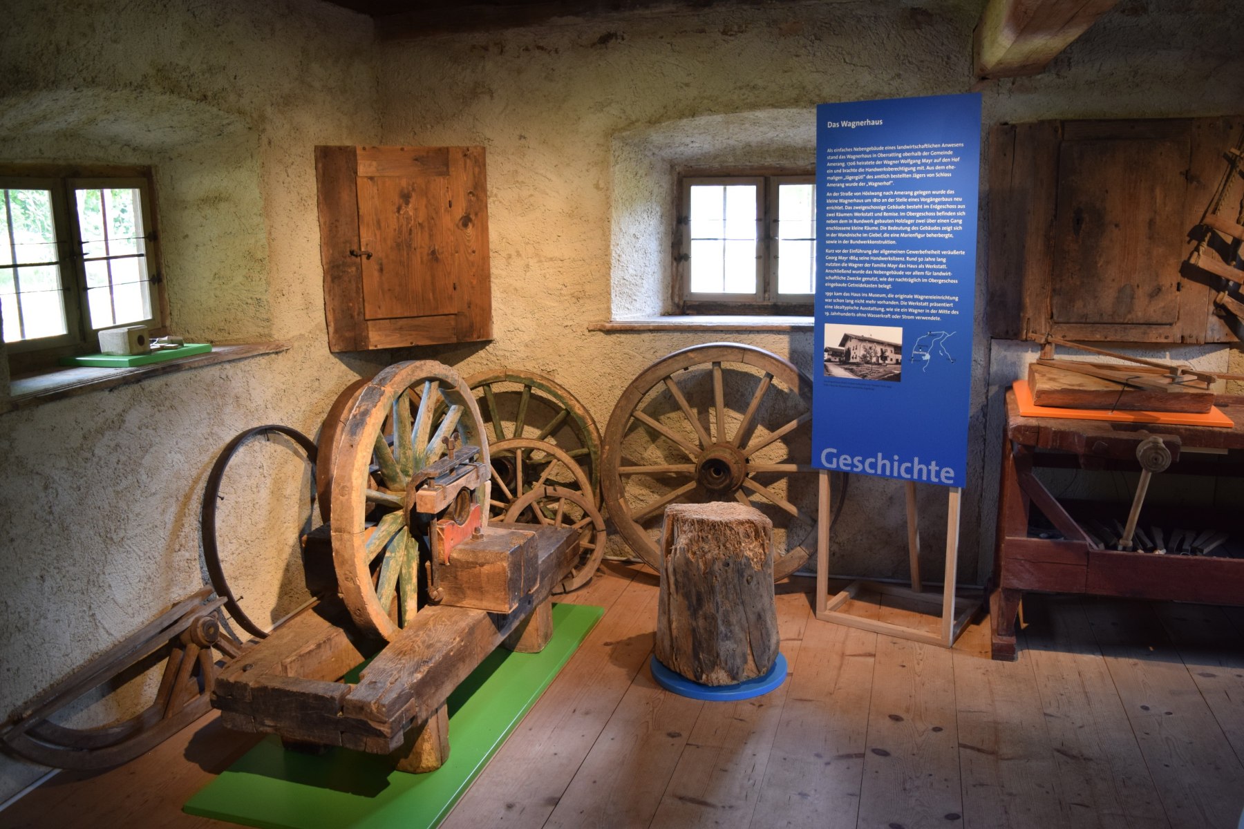 Die Präsentation in der Werkstatt des Wagnerhauses aus Oberratting. © Bezirk Oberbayern, Bauernhausmuseum Amerang