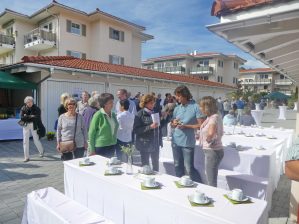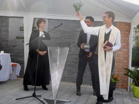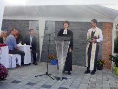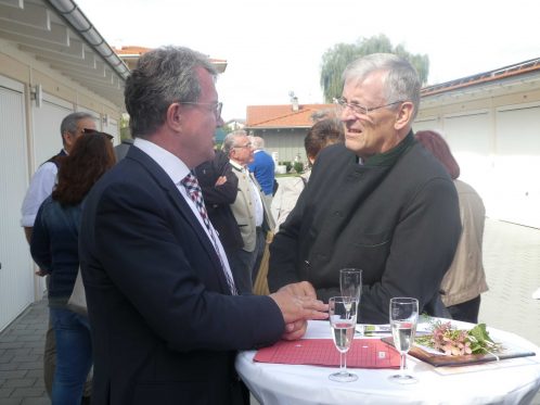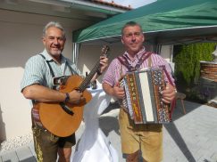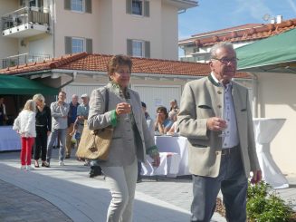 Alfons Maierthaler, Vorstandsvorsitzender der Sparkasse Rosenheim-Bad Aibling, der mit seinen Vorstandskollegen Karl Göpfert und Peter Stuhlreiter in der dritten Generation die Unternehmerfamilie Hartl partnerschaftlich betreut und begleitet, sprach von einem Festtag für Bernau. „Ich kenne den Landkreis Rosenheim sehr gut, was hier in Bernau geschieht, das ist schon etwas Besonderes“, sagte Alfons Maierthaler, der sich für die stets vertrauensvolle Zusammenarbeit herzlich bedankte. Irene Biebl-Daiber, Ortsvorsitzende der CSU Bernau-Hittenkirchen und Gemeinderätin sprach ebenfalls ein Grußwort aufgrund der langjährigen Verbundenheit zur Familie Hartl und sie sagte: „Seniorinnen und Senioren haben in Bernau eine Heimat und Zukunft“. Stefan Scheck, Geschäftsführer vom Ambulanten Pflege- und Betreuungsdienst Mayer-Reif-Scheck dankte für die langjährige und enge Zusammenarbeit mit den Einrichtungen im Aicherpark Bernau. Als Vorsitzender der Hospizgruppe Prien schätzte er sich glücklich, dass Erlöse aus dem Tag der offenen Tür dem Neubau des Chiemsee-Hospiz-Hauses in Bernau zugute kommen werden. Stephan Hartl würdigte in seinem Dank das harmonische Zusammenwirken von Planern, Handwerkern (aus der Region), Nachbarn und Bewohnern, die es ermöglichten, dass das Bauwerk so gut gelungen sei und dass in der Bauphase vielerlei Rücksicht genommen wurde. Die kirchliche Segnung nahmen gemeinsam Pfarrvikar Stefan Leitenbacher vom Pfarrverband Westliches Chiemseeufer sowie von der Evangelischen Kirchengemeinde Vikarin Sabrina Hoppe vor. Diese sagten mit Blick auf die älteren Menschen: „Die Sorgen sollen uns nicht das Herz schwer machen, freuen wir uns über das schöne, neue Haus und vertrauen wir auf Gott“. Mit Musik vom Duo Immerspitz aus Bernau, mit Kaffee und Kuchen, mit einem Informations-Stand sowie mit einem Kletter-Leuchtturm für Kinder wurde der Tag der offenen Tür von Jung und Alt ausgiebig gefeiert.