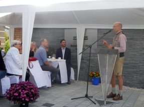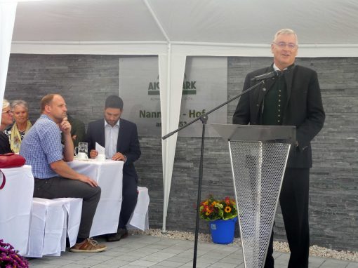 Das Interesse der Bernauer war groß als zur Eröffnung des Nannibas-Hofes und zum „Tag der offenen Tür“ in den Aicherpark eingeladen wurde, auch die Altbürgermeister Lorenz Steindlmüller und Klaus Daiber waren unter den Gästen. Bürgermeister Philipp Bernhofer bezeichnete die mit dem Aicherpark gegebene Versorgung für Seniorinnen und Senioren unter dem Motto „Komfort – Leben – 60 +“ als vorbildlich und außergewöhnlich. Beeindruckt zeigte sich auch Landtagsabgeordneter Klaus Stöttner vom Konzept des jungen Unternehmens Hartl und er sagte: „Das Leben im Alter ist ein Thema der heutigen Zeit, da ist es ein Segen für den Chiemgau, dass es in Bernau und damit auch auf dem Land ein so großes Angebot gibt. Erwähnt sei auch, dass das die Unternehmerfamilie Hartl ihre Projekte privat finanziert und ohne jegliche staatliche Förderung zurecht kommt“. Stephan Hartl, Bauherr des Erweiterungsbaues Nannibas-Hof, der zusammen mit seinem Bruder Michael Inhaber und Betreiber des Aicherparks ist, sprach in seinem Grußwort von der Philosophie seiner Familie. „In den zwei Jahren der Bauzeit für den Nannibas-Hof war es uns wichtig, etwas gegen die Vereinsamung der Menschen zu tun. Energie-Effizienz, Barrierefreiheit und die Voraussetzungen für ein selbstbestimmtes Leben waren bei den Planungen ebenso wichtig wie der Erhalt von einigen Teilen des alten Hofes aus dem Jahr 1852, ein Beispiel ist die neue Brunnenanlage“ – so Stephan Hartl.