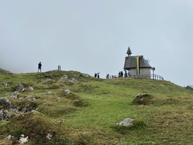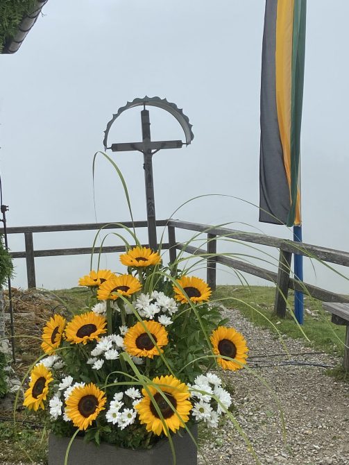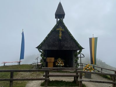 Für die Gefallenen in den beiden Weltkriegen aus dem Chiemgau wird heute Vormittag vor der Gedächtniskapelle „Maria, Königin des Friedens“ östlich der Steinlingalm auf der Kampenwand gedacht. Dazu diese ersten Bilder, die noch vor Beginn der Gedenkfeier entstanden sind.