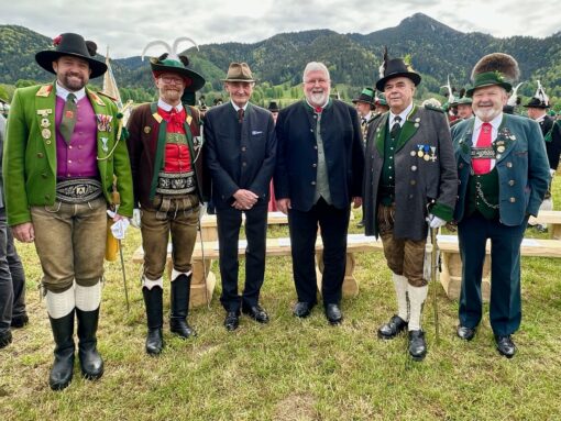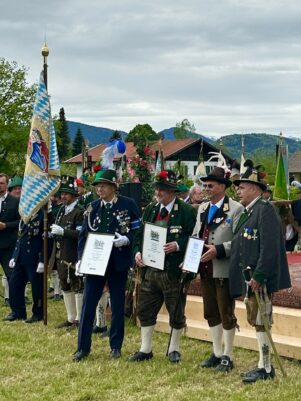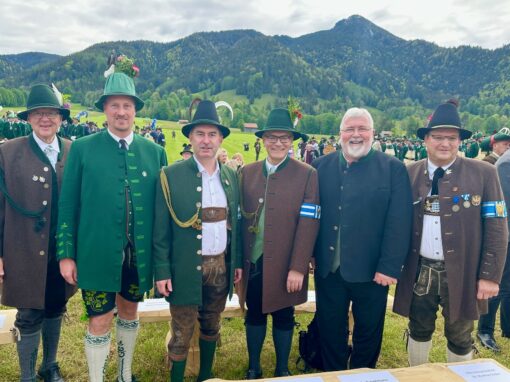 In Lenggries trafen sich am Sonntag, 5. Mai Bayerischer und Tiroler Gebirgsschützen und erfreuten sich eines schönen Wetters und zahlreicher Gäste.