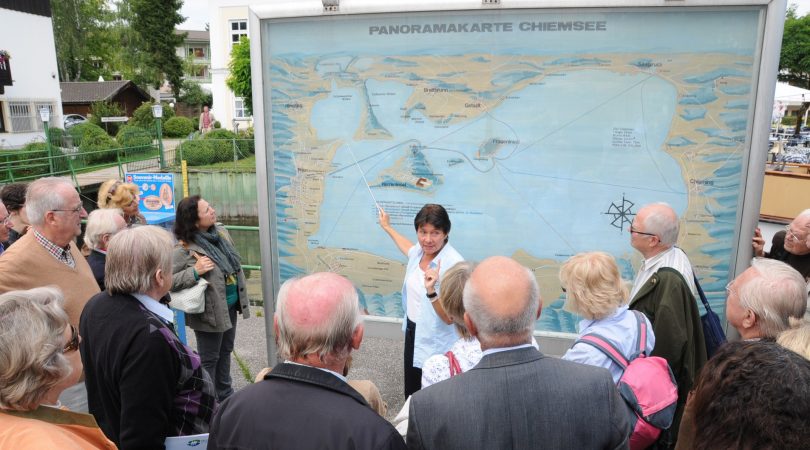 Die Seeführung vom Festland aus beginnt am 11. Mai und findet jeden Freitag bis einschließlich 12. Oktober 2018 auf einer kurzen auch für Rollstuhlfahrer geeigneten Geh- und Verweilstrecke entlang dem Chiemseeufer in Prien statt. Orts- und Gästeführerin Helga Schömmer hält jede Menge humoristische Details, kuriose Zahlen und Fakten über das Bayerische Meer bereit.