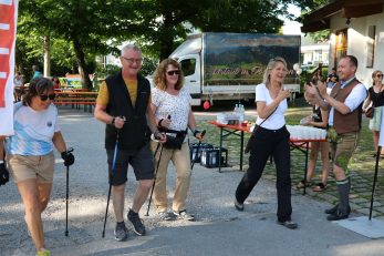Nach 16 Minuten war Georg Aringer wieder im Ziel bei der Tourist Info Aschau. Der Zwölfjährige lief die Drei-Kilometer-Strecke und kehrte als erster der 48 gemeldeten Läufer von der Strecke zurück. Zum ersten Aschauer Bankerllauf luden das „Lauffeuer Chiemgau“ und die Tourist Info Aschau gemeinsam ein. Drei Strecken standen den Sportlerinnen und Sportlern entlang der Prien zur Auswahl; je nach Wunsch, Laune und Können wählten die Läufer aus dem Angebot drei, fünf oder sieben Kilometer Streckenlänge. Tourismus Chef Herbert Reiter übernahm die Schirmherrschaft über diesen Lauf, der weitgehend ohne Zeitnahme ablief; nur so zum Spaß an der Freude wurde gelaufen, gegangen und gewalkt – je nach dem Können und der Kondition der Einzelnen. Gemeinsam mit der Organisatorin Christine Heckel vom Lauffeuer Chiemgau startete er das Feld und die Läufer machten sich auf die Strecken. Zum Betrachten der vielen Bankerl auf der Strecke oder gar zum Niedersitzen und Ausrasten auf einem der Bankerl war natürlich keine Zeit, ein bissel Ehrgeiz war schon bei allen da, nicht als Schlusslicht im Ziel einzulaufen. Nach einer knappen Stunde waren auch die letzten Geher und Walker wieder an der Tourist Info zurück. Der Reinerlös der Veranstaltung geht an das Benedetto Menni Nest in Aschau.