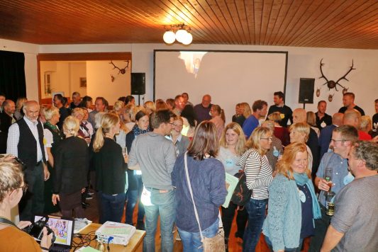 „Wir sind seit drei Tagen hier in Frasdorf und haben heute die Gelegenheit gleich beim Schopf gepackt andere interessante Menschen hier im Ort kennen zu lernen“, Rudi und Silvia kamen bereits kurz nach ihrer Ankunft in Frasdorf zu den „Frasdorfer Dorfgesprächen“ in die Wildenwarter Schlosswirtschaft, andere mussten über 80 Jahre alt werden, um das erste Dorfgespräch in der Gemeinde Frasdorf zu erleben. Die Frasdorfer Gemeinderätin und Asylbeauftragte Christine Domek-Russwurm lernte das Projekt aus dem nördlichen Landkreis kennen und fand in der Gemeinde Frasdorf viele Interessierte, die das Konzept miteinander auch in der eigenen Gemeinde ausprobieren wollten. Mit einer Gruppe von 30 Frauen und Männern ging sie an diese selbst gestellte Aufgabe heran, entwickelte das Konzept für Frasdorf weiter und bereitete alles im Saal der Schlosswirtschaft vor.