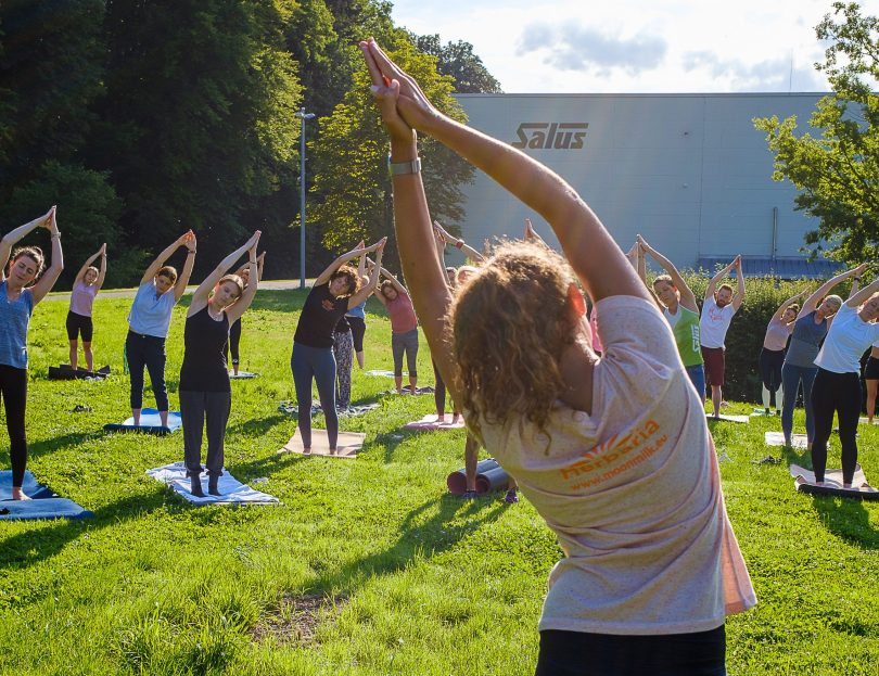 “Fit für morgen – Mission Gesundheit” – unter diesem Motto stand der erste Gesundheitstag der Salus Gruppe in Bruckmühl. Das Angebot für alle Mitarbeitenden von Salus und Herbaria ging von Yoga über Info- und Verkostungsstände bis hin zu Vorträgen und Gesundheitsberatung. Beim Bruckmühler Familienunternehmen steht Nachhaltigkeit im Fokus. Dazu zählt auch, dass die Menschen hinter der Marke Salus lange glücklich und vor allem gesund bleiben.