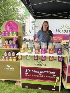 Herbaria Mitarbeiterin an der Moon Milk Verkostungsbar der Herbaria Rikscha. Bildnachweis: Herbaria Kräuterparadies GmbH