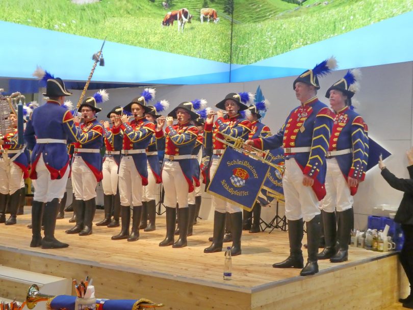 Bayern in seiner ganzen Vielfalt und Brauchtumsfreude war zu sehen, zu hören und zu spüren beim ersten Sonntag auf der Grünen Woche. Zu den Mitwirkenden gehörten unter anderem die Schleißheimer Schlosspfeifer, die Aktiven und Musikanten vom Bairer Winkl aus dem Bayerischen Inngau, die Kindsbier-Musik aus Bad Endorf und die Trachtenkapelle Oberried aus dem Schwarzwald.