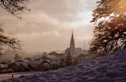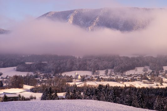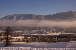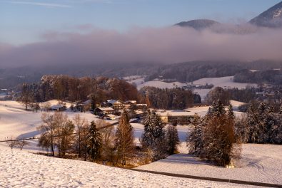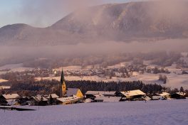 Das Hochplateau Samerberg zeigt sich auch im Winter von seiner schönsten Seite – das vermitteln diese aktuellen Bilder mit viel Winterstimmung, mit Sonnenuntergang und mit einem Einblick auf das Leben der Hühner, die im Schnee von Steinkirchen nicht mehr das finden, wonach sie sonst gesucht haben.