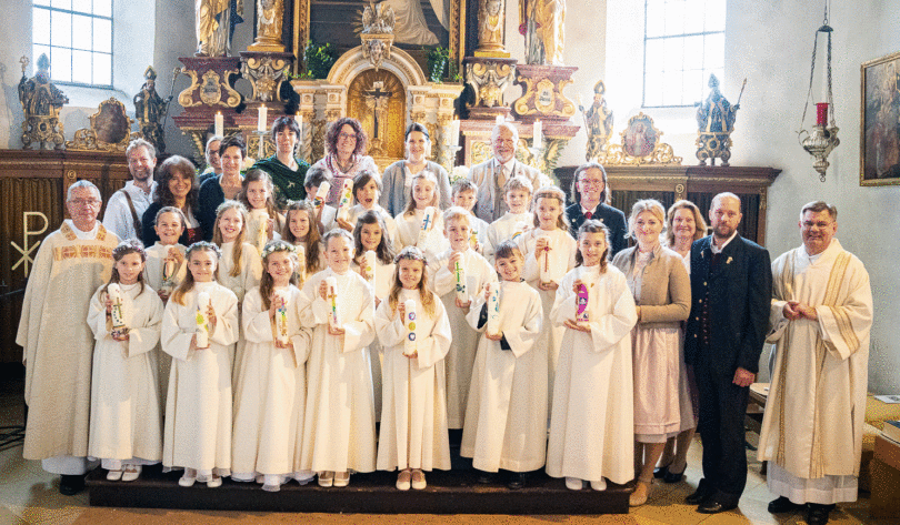Die Gruppenmütter und Gruppenväter haben die sechs Buben und dreizehn Mädchen in den Gruppenstunden gut vorbereitet. Beim Gottesdienst, der von Pfarrer Robert Baumgartner zelebriert wurde, legte Diakon Günter Schmitzberger in der Predigt den Kindern ans Herz, „dass Christus sie ins Herz geschlossen hat und mit ihnen den Lebensweg auch außerhalb der Kirchenmauer mitgeht. So dürfen sie ihn mit seiner Kraft nachahmen und zu den anderen Menschen auch herzlich sein.“