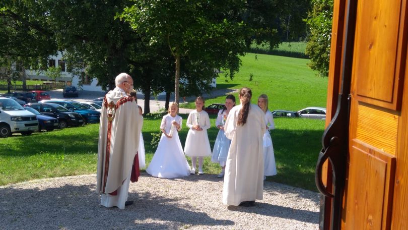 Aufgeteilt in mehrere Gruppen müssen heuer corona-bedingt die Erstkommunionfeierlichkeiten in der Pfarrgemeinde “Christkönig” in Wildwart. Am jüngsten Wochenende bekamen fünf junge Dirndl das festliche und nachhaltige Erlebnis des Empfangs der Ersten Heiligen Kommunion. Pfarrer Konrad Kronast und Gemeindereferintin Cornlia Gaiser dankten ihrerseits für vielfache Eltern- und Begleiger-Unterstützung, so war es auch in Corona-Zeiten möglich, Erstkommunion zu feiern und zu erleben.