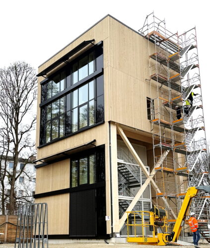 -Die Außenschalung in Weißtanne: So ist die Fassade des neuen Technologieparks für die Technische Hochschule Rosenheim geplant.