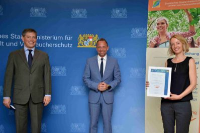 Bayerns Umweltminister Thorsten Glauber hat der Abteilung Umwelt des Erzbischöflichen Ordinariats München am Montag, 12. Juli, das Qualitätssiegel „Umweltbildung.Bayern“ verliehen. Die Abteilung Umwelt wird damit als einer von sieben neuen Trägern des Siegels für hochwertige Bildung für Nachhaltige Entwicklung (BNE) und Umweltbildung geehrt. Bereits seit Jahresbeginn darf die Abteilung Umwelt das Qualitätssiegel verwenden, aufgrund der Maßnahmen zur Eindämmung der Corona-Pandemie fand die offizielle Verleihung erst jetzt statt. Das Siegel wird für drei Jahre verliehen, dann kann eine Rezertifizierung erfolgen.