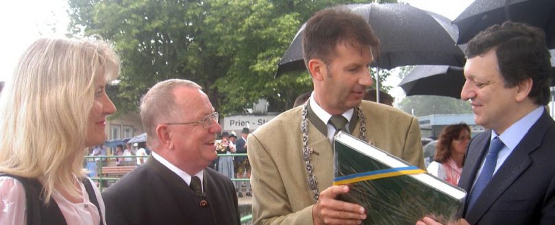 Wie der Chiemgau-Zeitung vom 16. August zu entnehmen ist, war in diesen Tagen überraschend der regierende EU-Kommissions-Präsident Jean-Claude Juncker in Prien zu Besuch. Mit Freunden stattete er der Herreninsel mit dem Königsschloss einen Besuch ab und besuchte ohne vorherige Anmeldung das Cafe Heider in der Priener Fußgängerzone.  Franz Heider senior gelang es noch, einen Eintrag in das Gästebuch des traditionsreichen Cafes zu bekommen, ein Foto kam allerdings nicht mehr zustande. Anders war dies im Jahr 2004, also vor 15 Jahren, als nur wenige Tage nach seinem Amtsantritt der damalige EU-Kommissions-Präsident Jose Manuel Barroso nach Prien kam. Barroso hatte noch als Ministerpräsident von Portugal die Einladung des damaligen bayerischen Ministerpräsidenten Dr. Edmund Stoiber angenommen. Empfangen wurde der hohe politische Gast in Prien-Stock von den Priener Bürgermeistern Christian Fichtl und Michael Anner sowie von der Wildenwarter Blaskapelle. Nach Eintragungen in die Ehrengäste-Bücher der Gemeinde und der Chiemsee-Schifffahrt folgte die Überfahrt nach Frauenchiemsee mit Empfang durch Inselbürgermeister Georg Huber. Von der Priener Empfangs-Delegation erhielt Barroso das Chiemsee-Maler-Buch, das auch heute noch im Priener Rathaus erhältlich ist.