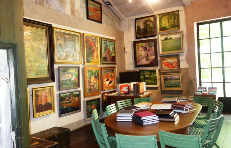 Die meisten der fast 70 ausgestellten Werke – abgesehen von den wunderbaren 32 Originalwerken in der Dauerausstellung im Großen Atelier, darunter ein Wandfresko mit Ehefrau Judith Anna Exter und den Kindern Judith und Karl, sind nach 1902 entstanden, nachdem Exter das frühere Bauernhaus in Feldwies erworben hatte. Immer wieder schön und erholsam ist auch ein Gang durch den „echten“ historischen Garten des Hauses, der jetzt in voller Sommerblüte steht. Er wird von der Leiterin des Exter-Hauses, Monika Kretzmer-Diepold inzwischen seit 45 Jahren, so gestaltet, wie er zu Exters Zeiten aussah, und liebevoll in unzähligen Arbeitsstunden gepflegt.