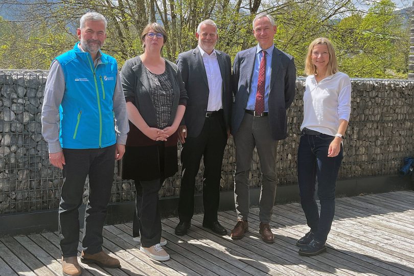 Im Bild (v.l.): Nationalparkleiter Dr. Roland Baier; Gudrun Mühlbacher vom DWD München; Tobias Fuchs, Geschäftsbereichsleiter im DWD; Dr. Christian Barth, Amtschef im Bayerischen Umweltministerium und Dr. Christina Koppe vom DWD Offenbach.