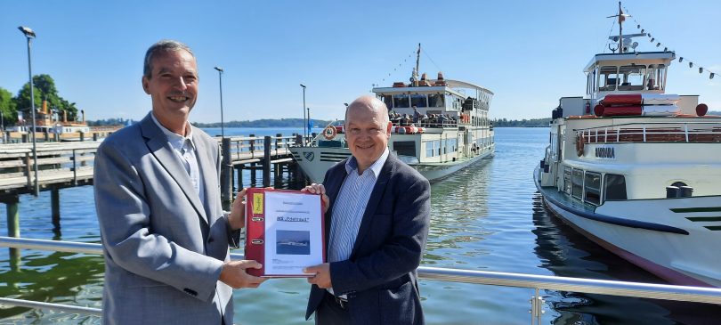 Bericht und Foto: Chiemsee-Schifffahrt – links Kreisbrandmeister Christian Hof, rechts Michael Feßler