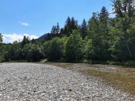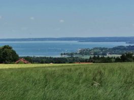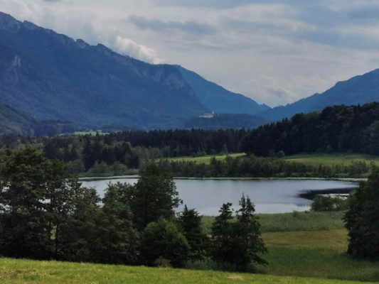 Kurz vor dem Langbürgner See macht unsere Route einen scharfen Rechtsknick und über eine verkehrsarme Autostraße erreichen wir Rimsting-Bahnhof. Dort erinnert die Königslinde an den persönlichen Wartesaal-Pavilion von König Ludwig II. Von hier aus ließ er sich mit Kutsche und danach mit dem Ruderboot zur Herreninsel befördern. Kurz darauf sehen wir linker Hand die Schafwaschener Bucht, einen landschaftlich besonders schönen Abschnitt des Chiemsees, durch die Bäume schimmern. Nach dem Strandbad und der durchfahren wir den westlichen Bereich Priens und nähern uns nach mehreren Kilometern dem Fauna-Flora-Habitat Bärnsees.