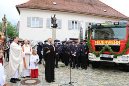 „Allzeit gute Fahrt, Gottes Segen und eine gute Heimkehr für alle nach jedem Einsatz“! wünschten Kaplan Philipp Werner und Pfarrerin Hannah von Schroeders allen Aschauer Feuerwehrleuten und segneten nach dem Festgottesdienst in der Pfarrkirche das neue Hilfeleistungs-Löschfahrzeug HLF 20 auf dem Kirchplatz. Kaplan Philipp Werner war während seiner Aschauer Diakonats-Zeit bis vor einem Jahr als Feuerwehrseelsorger tätig und nahm aktiv an den Einsätzen und Übungen der Aschauer Wehr teil. Auch nach seiner Versetzung als Kaplan nach Landshut ist er weiterhin für die dortige Feuerwehr tätig; es war für ihn Ehrensache die feierliche Fahrzeugweihe in Aschau zu übernehmen, die Festpredigt zu halten und mit seinen Aschauer Feuerwehrkameraden zu feiern.