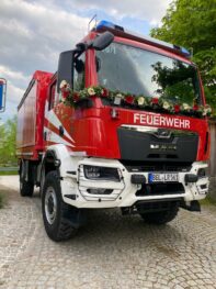 Im Rahmen des Jahrtages wurde nach der Segnung durch Diakon Peter Walter von Landrat Bernhard Kern an den Ortsbürgermeister Markus Winkler und wiederum an den 1. Kommandanten Helmut Gumpinger das neue Fahrzeug übergeben. Das Fahrzeug kann künftig landkreisweit eingesetzt werden.