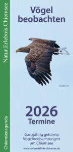 Das jährlich erscheinende Faltblatt bietet nicht nur alle Termine der kostenlosen Vogelbeobachtungen an sieben malerischen Standorten, sondern auch viele weitere Informationen zum Thema.