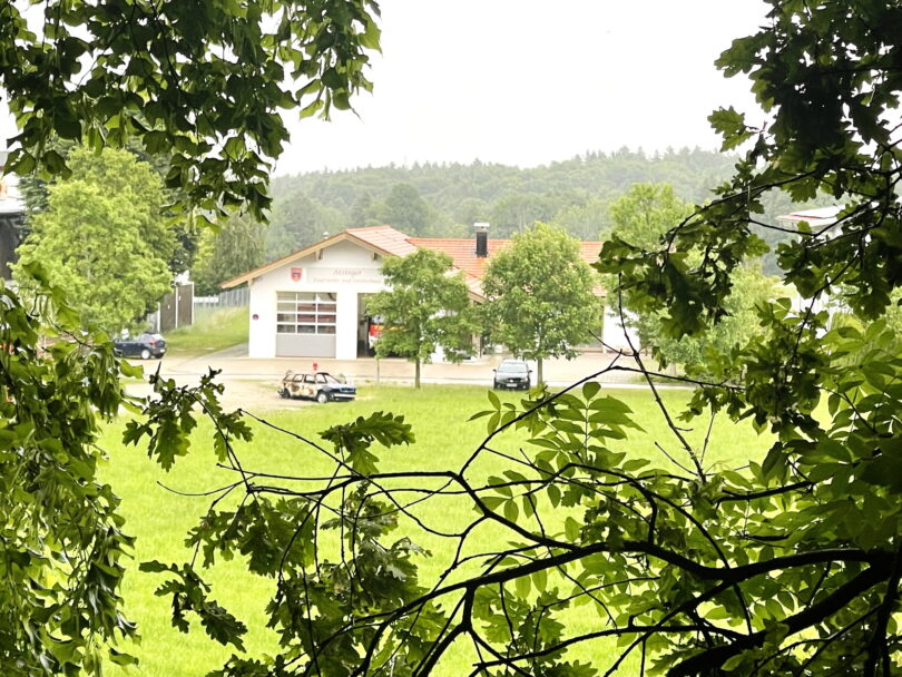 Foto: Hötzelsperger – Platz vor dem Vereinshaus Atzing – Anlage: Plakat der FFW Atzing