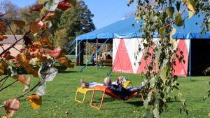Während sich Erwachsene derzeit mit Vorliebe im Mühlengarten oder auf der Liegewiese vor dem Zirkuszelt erholen, wird es im Zelt am Montag das große Kürbis-Schnitzen geben. Fotos: LAGA Beelitz gGmbH.