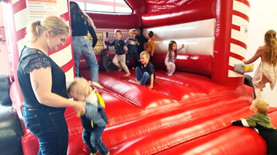 Neben all den kulinarischen Genüssen, war für Kinder einiges an Attraktionen geboten. Die Hüpfburg, und die Ecke mit den Bauklötzen in der Halle erfreute sich bei Jung und Alt großer Beliebtheit. Im überdachten Sandkasten-Container konnten die Kleinsten Festbesucher nach Herzenslust schaufeln und baggern.