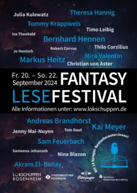 Ob Gelegenheitsleser oder „Verschlinger“ von Buchreihen: das Wochenende vom 20. bis 22. September 2024 bietet Superlative. Über drei Tage hinweg werden auf dem Fantasy Lesefestival in Rosenheim mehr als 20 der renommiertesten deutschen Autorinnen und Autoren aus der Welt der fantastischen Literatur ihre Werke präsentieren. Von Science-Fiction bis High Fantasy und allem dazwischen und drum herum, für Erwachsene, Kinder und Young Adults. Die Lesungen finden im Ausstellungszentrum Lokschuppen, in der Stadtbibliothek, in der Black Box des Stadtjugendrings, im Innmuseum und im Ballhaus in Rosenheim statt.