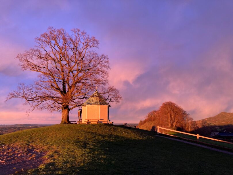 Als sich dieser Tage der Sahara-Staub ankündigte und sich die Abendsonne neigte, da gab es ganz besonders farbenstarke Bilder in der Chiemgauer Landschaft.