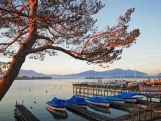 Farblich abwechselnd und nachsommerlich einladend – so präsentiert sich derzeit der Chiemsee mit seinen Inseln und Ufergemeinden.