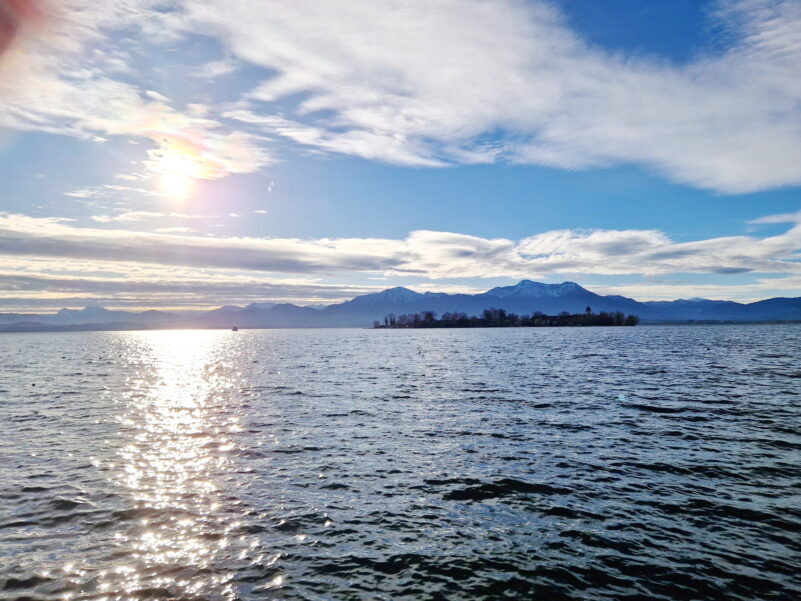 Froh und farbig zeigt sich zuweilen an den Spätwinter- und Vorfrühlingstagen der Chiemsee, der auch gerne das Bayerische Meer genannt wird.