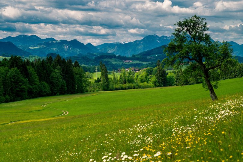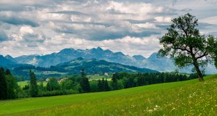 Herrliche Ausblicke gewährt die hügelige Landschaft im Chiemgau an vielen Orten. Zum Beispiel von Niesberg in die Gemeinde Frasdorf, über den Samerberg hin zum Wendelstein oder hinüber zur Kampenwand. Ein schöner Punkt zum Innehalten ist auch der Aussichtsturm auf der Ratzingerhöhe in der Gemeinde Rimsting. Von diesen aussichtsreichen Stellen ein paar Aufnahmen dieser Tage im Mai mit gelb-grünen Wiesen und mit weitem Blick in die weiß-blau bewölkte Landschaft.
