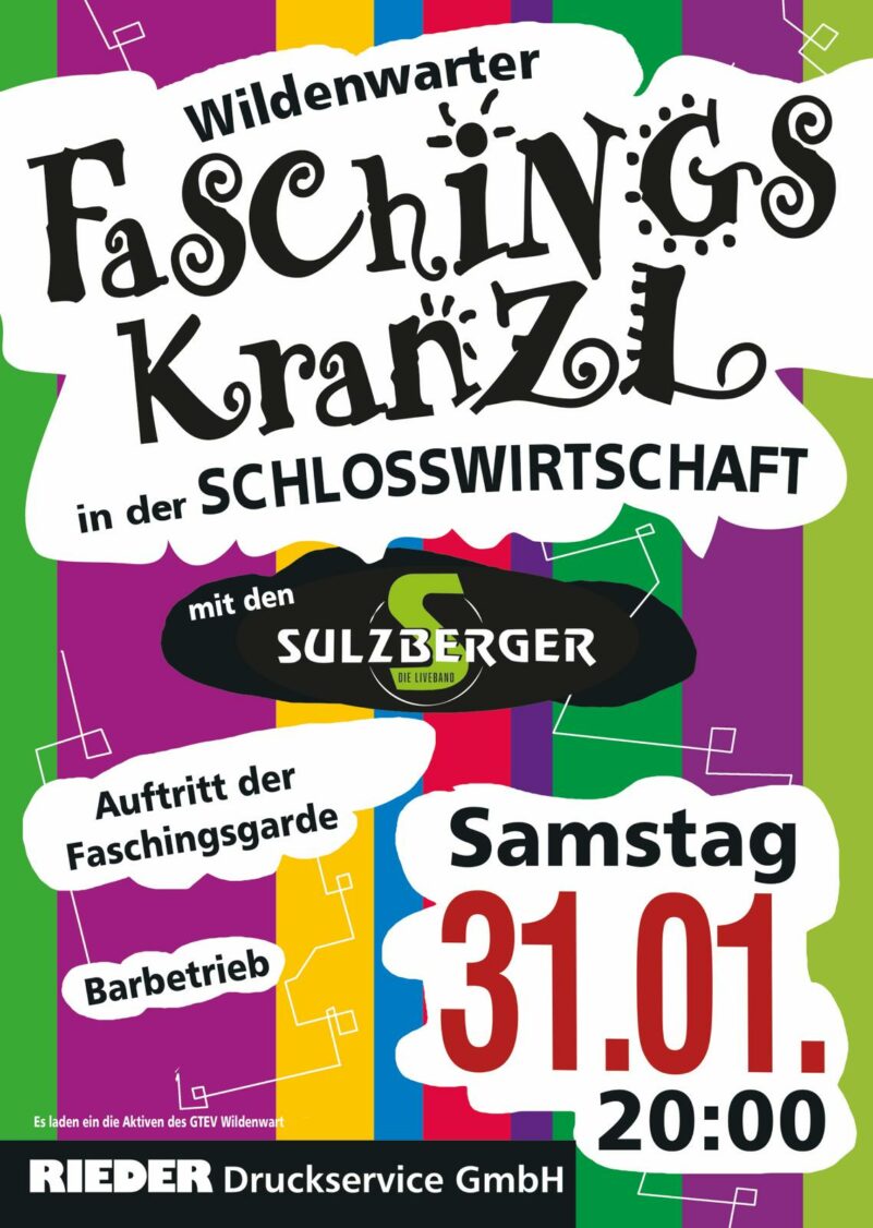 Der Trachtenverein Wildenwart lädt am Samstag, 31. Januar, zum Faschingskranzl in die Wildenwarter Schlosswirtschaft ein.