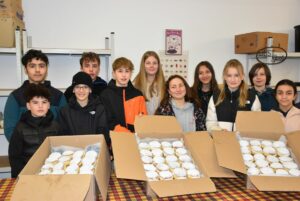 Die Schüler und Schülerinnen der Französisch Gruppe der Klasse 7 c brachten die frischen Faschingskrapfen in die Räume der Tafel