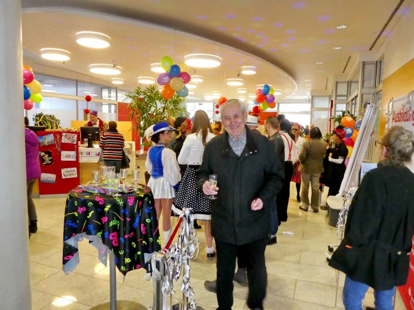 Es ist schon eine fröhliche Tradition, dass am Unsinnigen Donnerstag Priener Geschäfte offen haben und mit Masken und Ideenreichtum den Kunden einen schönen Tag bieten. Zu den Gastgebern gehörte auch die Sparkassen-Geschäftsstelle in der Hochriesstraße. Dort fanden sich neben den Kunden und Bediensteten des Priener Rathauses auch das Prinzenpaar und die gardemädchen der Prienarria ein. Von den farbenfrohen Begegnungen einige Bilder-Impressionen.