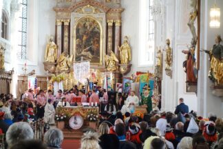 Der 100. Geburtstag der Faschingsmusik Waging am See begann am Festsonntag mit einem besonderen Gottesdienst in der Pfarrkirche „St. Martin“ in Waging am See. Mit viel Musik, schönen Masken sowie Jung und Alt wurde der Gottesdienst mit Pfarrer i. R. Sebastian Heindl und vielen Beteiligten im Altarraum gefeiert.